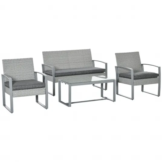 Outsunny Salon de Gradina din Ratan Gri Set Mobilier de Exterior 4 Buc