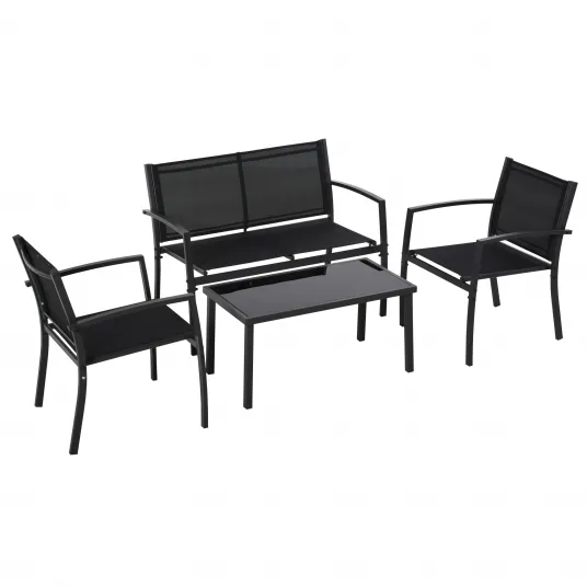 Outsunny Set de Gradina 4 bucati cu Masuta de cafea, 2 Scaune si o Panca in Metal, Negru