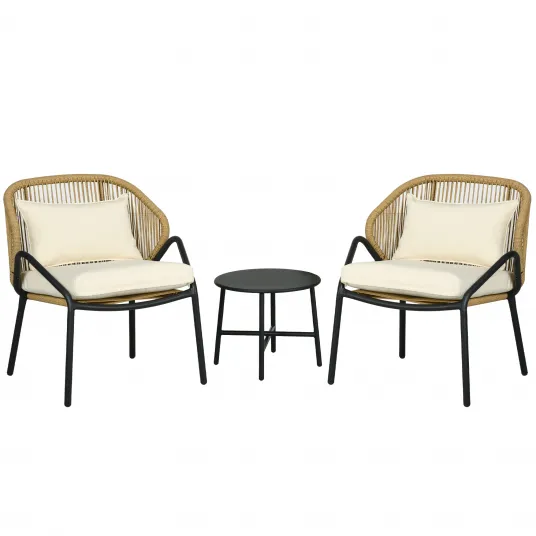 Outsunny Set pentru Bistro din 3 Piese pentru Terasa cu Scaun si Perna pentru Spatar, Set de Mobilier din Rachita, Alb Crem