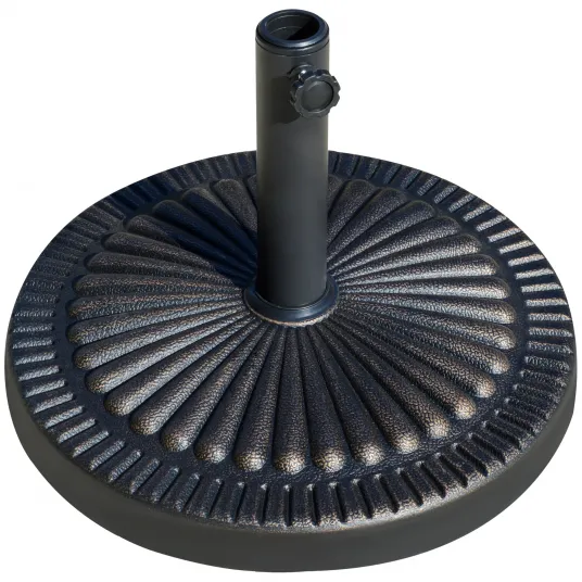 Bucurati-va de timpul petrecut in aer liber cu acest suport pentru umbrela de la Outsunny. Baza de umbrela de exterior este potrivita pentru stalpi de umbrela cu diametre de 38mm si 48mm. Fabricata din rasina rezistenta la rugina, aceasta nu necesita umplerea cu apa sau nisip pentru sporirea greutatii. Indiferent daca il utilizati pentru gradina, terasa sau piscina, acesta este suportul de umbrela de care aveti nevoie. Pur si simplu combinati suportul de umbrela cu o umbrela si o masa frumoasa de terasa si va veti crea propria oaza, asigurandu-va umbra atat de necesara.