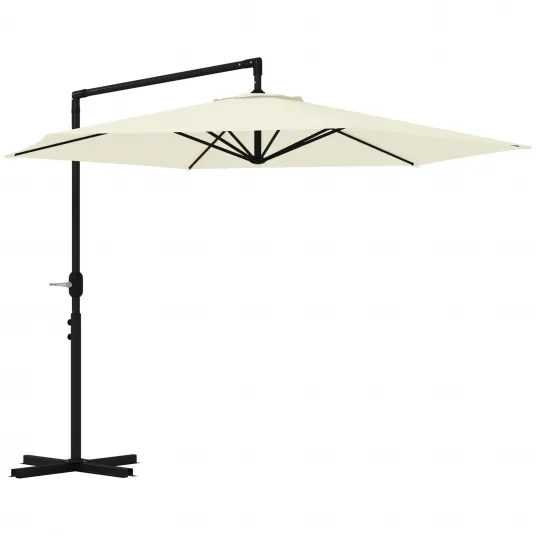 Outsunny Umbrela de Terasa de 2,91m in Consola cu Manivela, Baza in Cruce si Orificiu de Aerisire, Umbrela Rotunda Suspendata