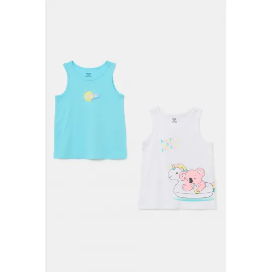 OVS, Set de topuri de bumbac - 2 piese, Alb, Albastru glaciar, 122 CM