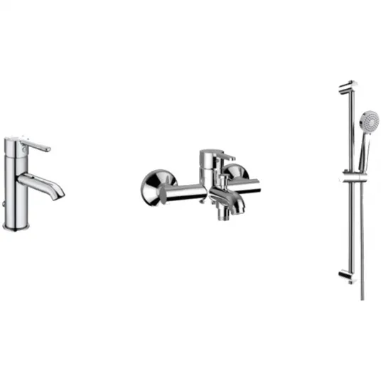 Pachet baterii pentru cada si dus Roca Carelia, Baterie lavoar + Bateria cada + Set de dus cu bara, Crom