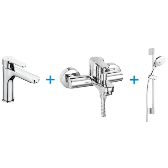 Pachet baterii Roca L20: baterie lavoar Cold Start + baterie cada dus + set dus, para dus, bara dus, furtun dus
