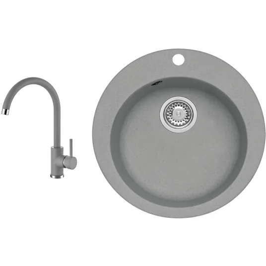Pachet Chiuveta Alveus Victoria 10, material compozit, diametru 510mm, adancime 190mm, Gri Concrete + Baterie Kati, sifon inclus, Gri
