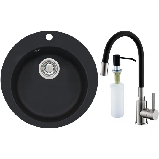 Pachet chiuveta bucatarie algranit Alveus Victoria 10 G 91, fi 505mm, sifon inclus + Baterie Flexa, Negru + Dozator, Negru