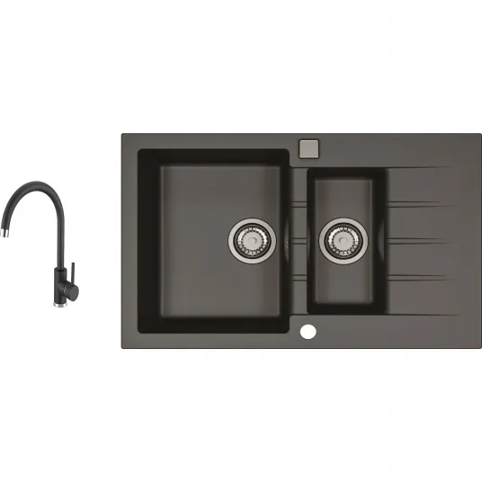 • Intretinere usoara: atat chiuveta, cat si robinetul sunt proiectate pentru curatare si intretinere usoara. Materialul compozit al chiuvetei este neporos, impiedicand dezvoltarea bacteriilor si facandu-l usor de curatat. Finisajul negru al robinetului rezista la pete, reducand timpul si efortul necesar intretinerii regulate.