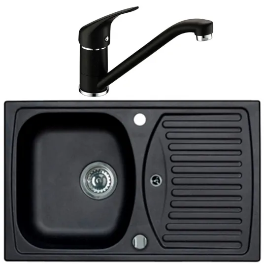 Pachet chiuveta bucatarie + Baterie Alveus Record30 + AM30A91, 780*480 mm, material compozit, reversibila, Negru