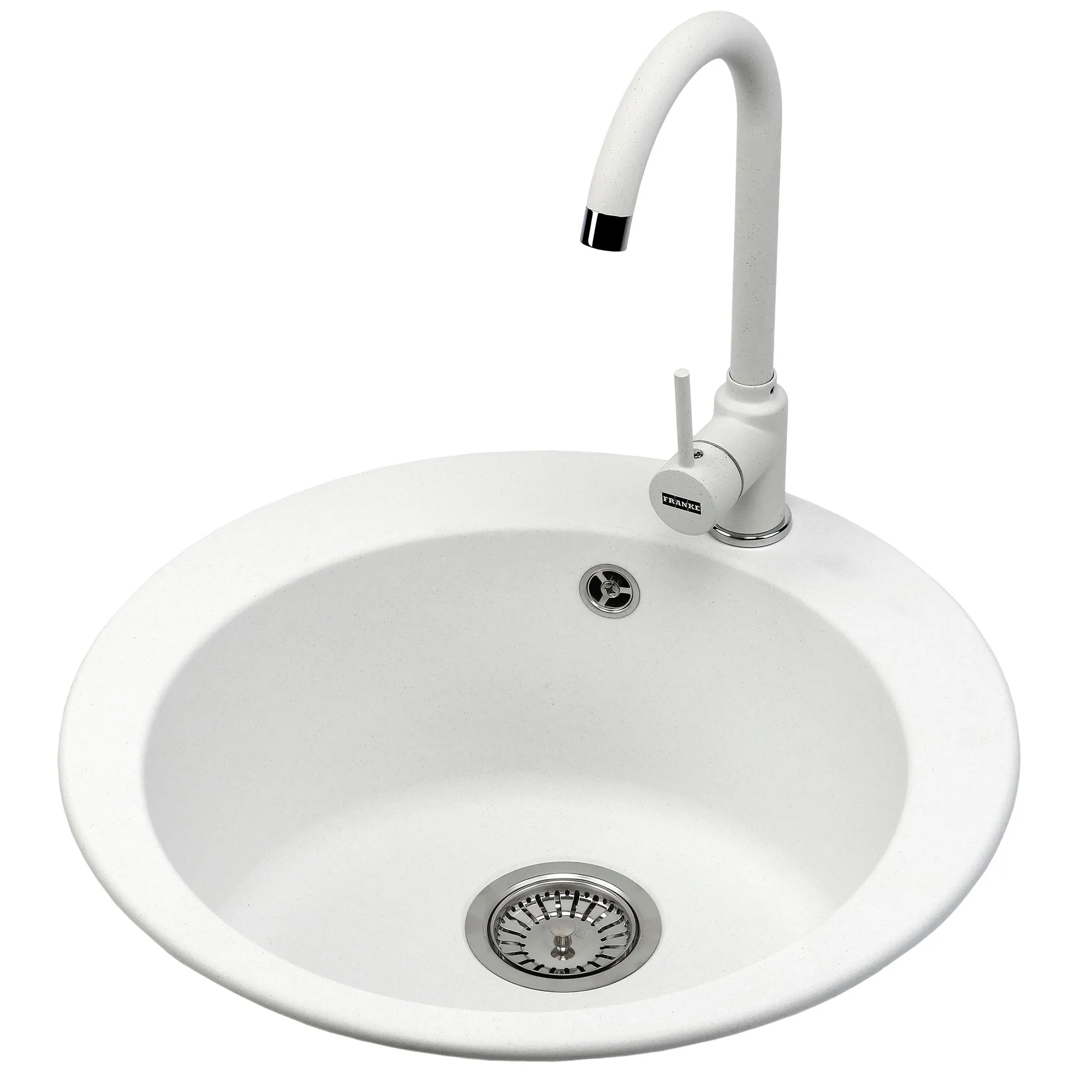 Pachet chiuveta Franke ROG 610 + baterie Franke Pola 1.0, fragranite, diametru 51cm, alb