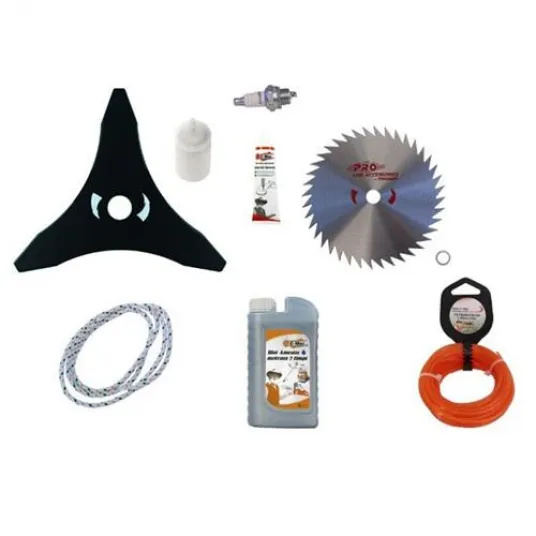 Pachet consumabile motocositoare, tub vaselina, disc 3 lame bujie, disc arboret, ulei motor, filtru benzina, fir trimmer, snur starter