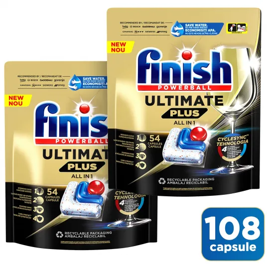 Pachet Detergent capsule pentru masina de spalat vase Finish Ultimate Plus, 2x54 buc, 108 spalari