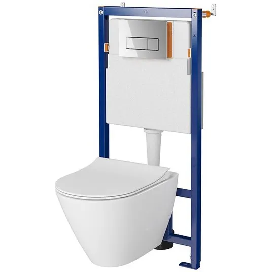 - Modern si elegant: Combinatia dintre toaleta suspendata in forma ovala, butonul de spalare cromat lucios si sistemul ascuns cu captuseala curata ofera un aspect modern si elegant, care imbunatateste estetica generala a baii dumneavoastra.