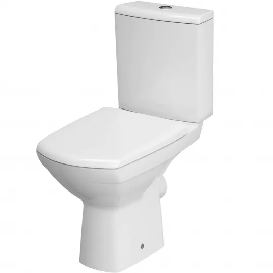 Pachet vas WC Cersanit Carina CleanON 744 010, rezervor 3/5 L, capac wc Duroplast, inchidere lenta, evacuare orizontala, Alb