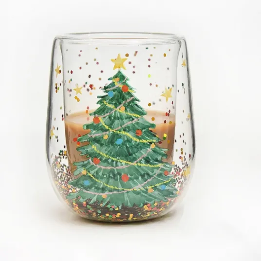 Pahar de cafea pentru Craciun, halba, 350 ml, Sticla borosilicata, Perete dublu, ceasca cu lapte Decor, transparent, WALALLA, Multicolor, transparent