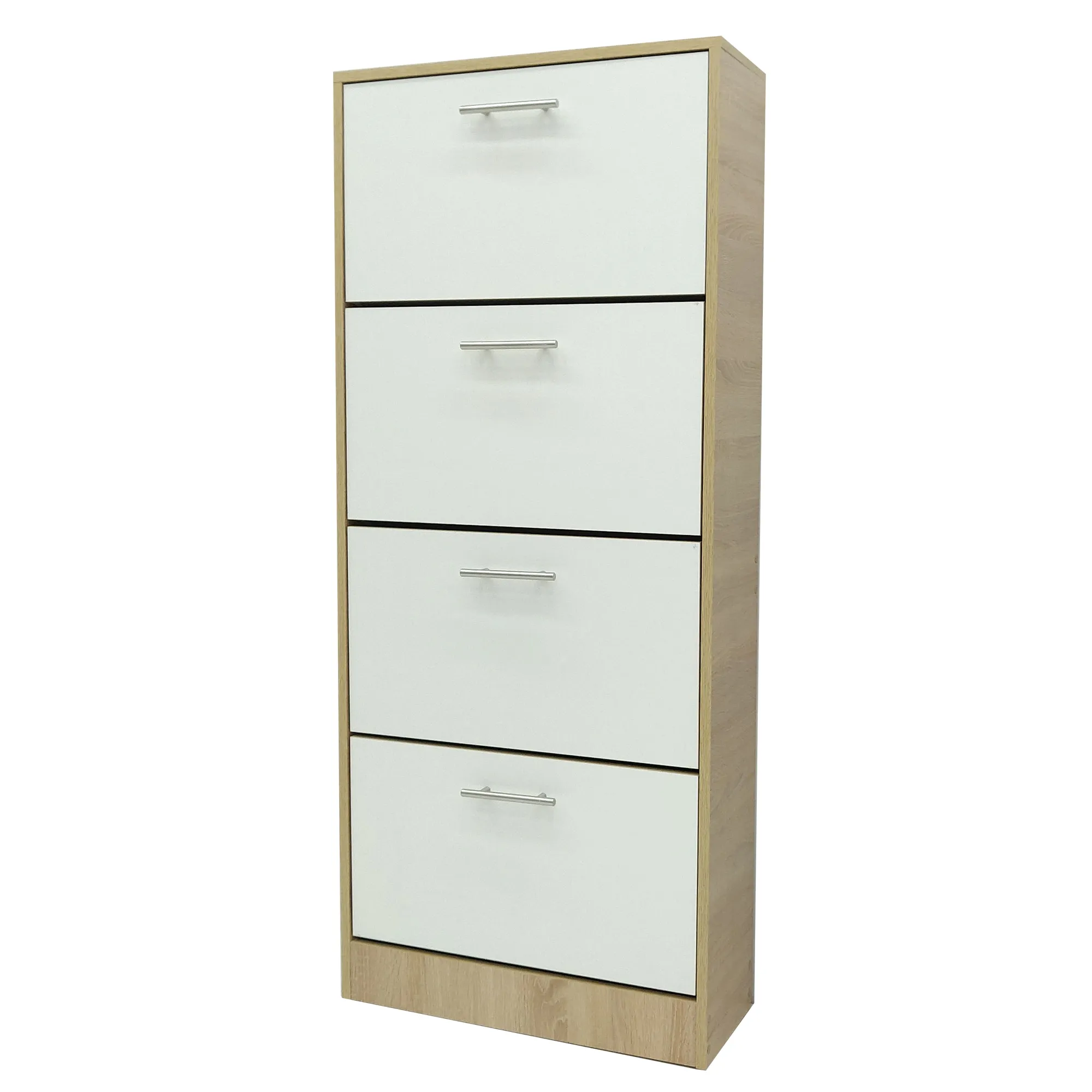 - Dulapul de pantofi Kring Quatro are un design modern, cu o combinatie de stejar sonoma si culoare alba care completeaza orice stil de decor.