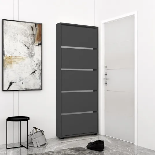 Pantofar Leo Slim 60x16x203H cm AnthraciteDulap cu 5 usi, potrivit p/u 10 perechi incaltaminte.