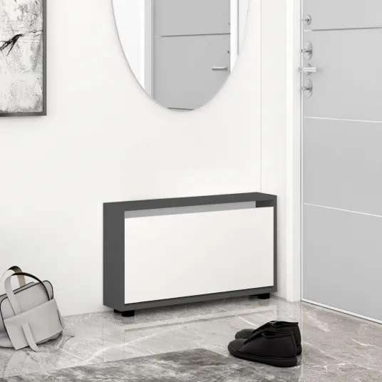 Pantofar Leo Slim 70x16x47H cm Anthracite/WhiteDulap cu 1 usa, potrivit p/u 3 perechi incaltaminte.