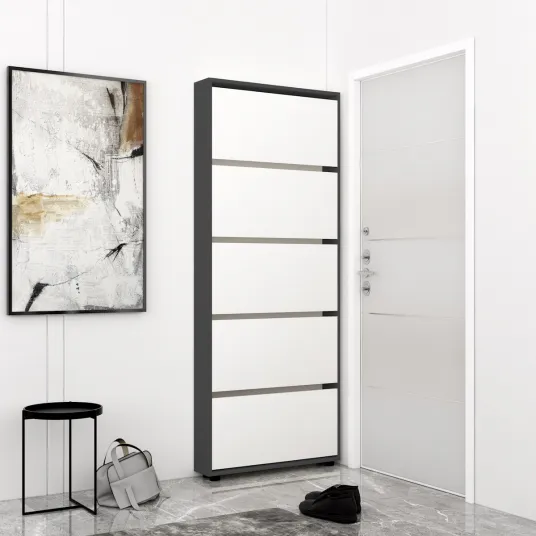 Pantofar Leo Slim 90x16x203H cm Anthracite/WhiteDulap cu 5 usi, potrivit p/u 20 perechi incaltaminte.