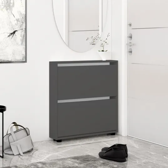 Pantofar Leo Slim 90x16x86H cm AnthraciteDulap cu 2 usi, potrivit p/u 8 perechi incaltaminte.