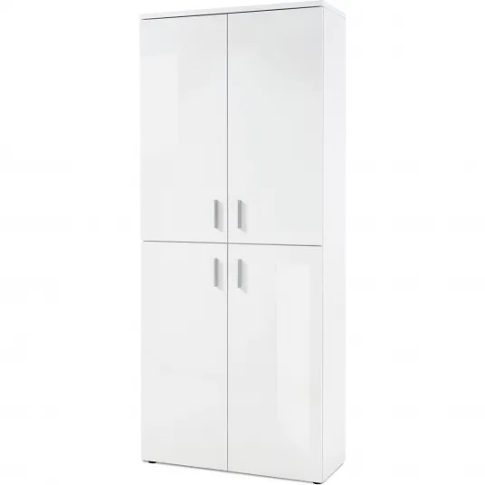 Pantofar Lincoln, 80x191x35 cm, 11 polite, 4 usi, culoare Alb Lucios