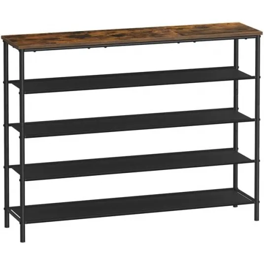 Un organizator de pantofi cu 4 rafturi din material textil, instructiuni ilustrate, o geanta de montare si un design industrial atractiv pentru a adauga mai mult farmec holului tau.