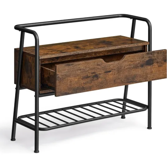 Pantofar Vasagle Maro 80x30x63.5 cm[4 zone de depozitare] Cu o distanta de 10 cm de jos si 16 cm in mijloc, aceasta banca ofera spatiu pentru 6 pana la 8 perechi de pantofi.<br> Sertarul adanc de 17 cm ofera spatiu amplu de depozitare, in timp ce partea de sus este perfect pentru gentile sau accesoriile tale.<br> [Sertar spatios si practic] Cu manerul sau decupat, acest sertar spatios este usor de deschis.<br> Ideal pentru depozitarea obiectelor mici, cum ar fi cheile si portofelele, punand capat cautarilor disperate atunci cand te grabesti dimineata.<br> [Curburi elegante, dragute si sigure] Liniile delicat curbate ale acestei banci de pantofi nu ofera doar o estetica rafinata, ci si te protejeaza de lovituri.<br> [Rezistenta si durabila ] Fabricat din PAL si otel, acest suport pentru pantofi poate rezista pana la 136 kg, asigurand durabilitate de lunga durata.<br> Stati pe spate si schimbati pantofii confortabil.<br> [Versatilitate in fiecare camera] Dincolo de scopul sau ca mobilier de intrare, poate fi folosit si ca banca de depozitare pentru camera dvs. de zi sau ca banca de la capatul patului pentru dormitorul dvs.<br> Pastrati-va interiorul organizat si elegant.<br><br>Specificatii:<br> Culoare: Maro rustic , cerneala neagra<br> Material: PAL, otel<br> Dimensiune produs: 11,8 inchi D x 31,5 inchi l x 25 inchi H (30 x 80 x 63,5 cm)<br> Greutate produs: 31,9 lb (14,5 kg) )<br> Max. Capacitate de greutate statica totala: 300 lb (136 kg)<br><br> Continutul pachetului:<br> 1 x banca de depozitare pantofi<br> 1 x kit de accesorii<br> 1 x instructiuni<br><br> VASAGLE Note: <br> Capacitatea maxima de greutate statica a bancii de depozitare a pantofilor este de 136 kg, va rugam sa nu depasiti aceasta limita.<br>Material: Placi PAL, otel<br>Dimensiune produs: 80x30x63,5 cm<br>Dimensiune pachet (Lxlxh): 92x38x18,5<br>Greutate neta: 14,5 kg <br>Greutate bruta: 16,3 kg<br>Volum: 0,064676 CBM<br>Culoare: maro, negru224187488224187488