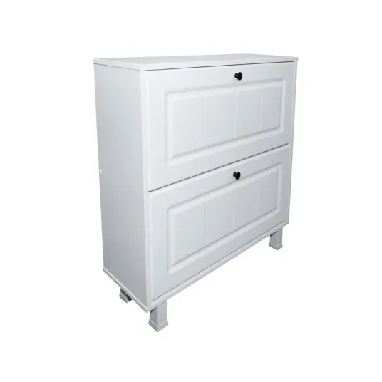 Usile rabatabile pe verticala, sunt fabricate din MDF infoliat alb mat cu frezare dungi si au cate 2 compartimente de depozitare ceea ce face mai practica si mai confortabila pastrarea incaltamintei.