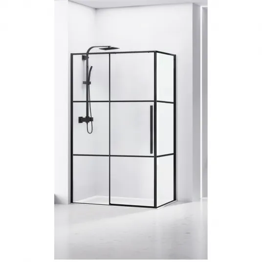 Paravan de dus dreptunghiular Belform Infinity 27CB1804, 1 usa culisanta, geam 6mm, cu dungi negre, profil negru mat, 120x80x200 cm