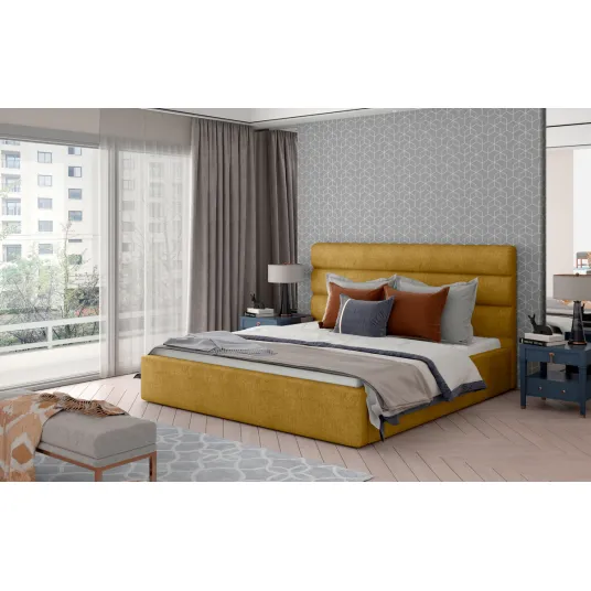 Caramelul este un pat elegant, gustos si foarte confortabil intr-un stil clasic, care va fi complementul perfect al interiorului oricarui dormitor. Suprafata mobilierului poate fi aleasa in patru variante: 140/ 160/ 180/ 200 x 200 cm, ceea ce il face potrivit pentru orice dimensiune a camerei.  Patul este disponibil atat cu cadru din lemn, cat si din metal. In acest din urma caz, castigam un recipient pentru asternut, precum si un lift de gaz pentru a facilita odihna de zi cu zi. O gama larga de culori va permite sa adaptati patul la decorul dormitorului. Dimensiunea eleganta a mobilierului este, de asemenea, influentata de capul inalt, care, decorat cu cusaturi, devine un element care confera intregii structuri o doza mare de eleganta.  Caramelul este combinatia perfecta de confort maxim si design interesant. Nu conteaza daca aveti un dormitor in stil clasic sau modern - Caramel este patul perfect peste tot si intotdeauna.