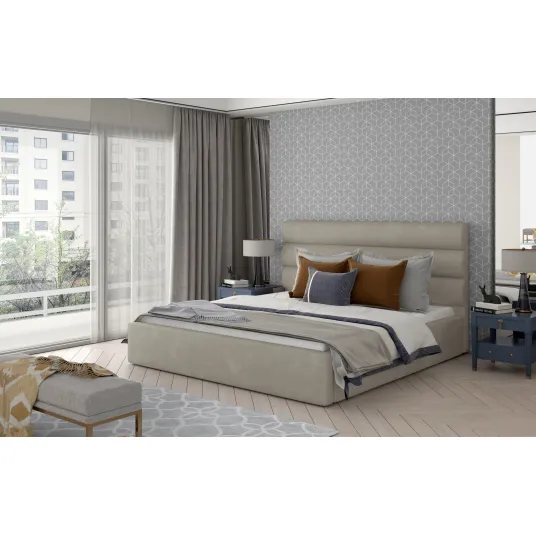 Pat dormitor Caramel 200x200 Cadru metalic./Amortizor pe gaz/Container, BejCaramelul este un pat elegant, gustos si foarte confortabil intr-un stil clasic, care va fi complementul perfect al interiorului oricarui dormitor. Suprafata mobilierului poate fi aleasa in patru variante: 140/ 160/ 180/ 200 x 200 cm, ceea ce il face potrivit pentru orice dimensiune a camerei. Patul este disponibil atat cu cadru din lemn, cat si din metal. In acest din urma caz, castigam un recipient pentru asternut, precum si un lift de gaz pentru a facilita odihna de zi cu zi. O gama larga de culori va permite sa adaptati patul la decorul dormitorului. Dimensiunea eleganta a mobilierului este, de asemenea, influentata de capul inalt, care, decorat cu cusaturi, devine un element care confera intregii structuri o doza mare de eleganta. Caramelul este combinatia perfecta de confort maxim si design interesant. Nu conteaza daca aveti un dormitor in stil clasic sau modern - Caramel este patul perfect peste tot si intotdeauna.223582614223582614