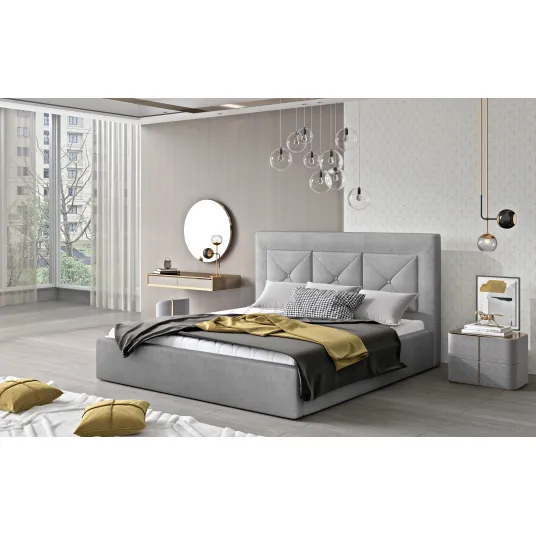 Pat dormitor Cloe 180x200 Cadru de lemn, GriCloe este un pat confortabil, confortabil, atragator si conturat corespunzator, conceput pentru cuNuscatorii de confort peste medie in orice moment al zilei sau al Nuptii, precum si un finisaj stilistic unic al elementelor individuale ale mobilierului. Cloe este un pat tapitat cu o inaltime de 93 cm si un cap moale pentru dormitoare - nu numai cele moderne, ci si cele clasice. Cu siguranta isi va gasi utilitatea, devenind atat o piesa confortabila de mobilier creata pentru relaxare, cat si o decorare care atrage atentia asupra sa. Toate acestea se datoreaza cusaturii originale care impodobeste capul inalt. Suprafata de dormit a patului Nustru a fost creata in pana la trei dimensiuni pentru a se adapta asteptarilor chiar si celor mai exigenti utilizatori. Oferta include un cadru din lemn si metal cu un lift de gaz, in care castigam un container spatios pentru asternut. Cloe este un pat simplu, dar foarte confortabil si gustos, care nu numai ca va satisface pe deplin viitorul proprietar, dar va incanta si functionalitatea si designul sau de multi ani. Un somn sanatos si confortabil pe un pat ca Cloe este placere pura.223582881223582881