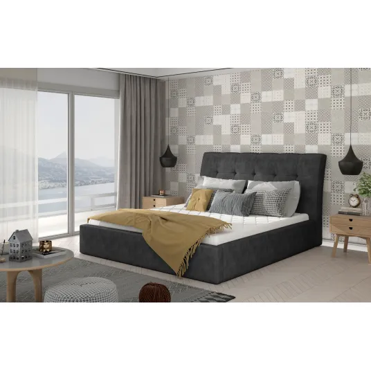 Pat dormitor Inge 140x200 + Cadru de lemn, Intunecat Gri