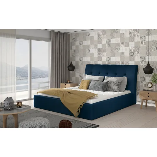 Pat dormitor Inge 180x200 + Cadru de lemn, Intunecat Albastru