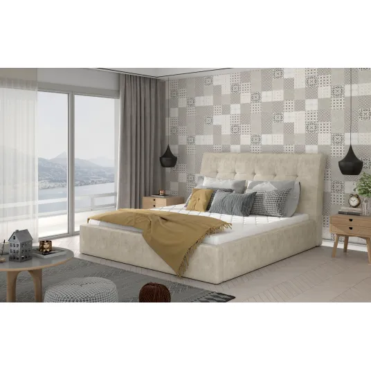 Pat dormitor Inge 200x200 + Cadru de lemn, BejInge este, de asemenea, un pat elegant si confortabil, care va fi finisajul perfect pentru orice aranjament modern al camerei dormitorului. Acest model, din care puteti alege in patru dimensiuni: 140/ 160/ 180/ 200 x 200 cm, are un aspect clasic, care a fost rupt cu un decor de bun gust pe tablia patului, in timp ce umplerea moale si flexibila cu spuma T25 creeaza un spatar conturat, inalt. O mentiune suplimentara ar trebui facuta si picioarelor joase din plastic, care pastreaza mobilierul intr-un stil simplu si elegant. Oferta Nuastra include atat cadre din lemn, cat si din metal. Acesta din urma este echipat cu un lift de gaz, datorita caruia ridicarea cutiei de mobilier este extrem de simpla si intuitiva. Daca sunteti interesat de un pat confortabil si elegant, disponibil in mai multe variante de culoare. Un pat care pastreaza elasticitatea si duritatea potrivita si, in acelasi timp, este functional si finisat cu atentie din punct de vedere al designului - va invitam sa va interesati de mobilierul Nustru. Daca calitatea somnului este importanta pentru dvs. - Inge va fi cu siguranta alegerea perfecta.223585402223585402