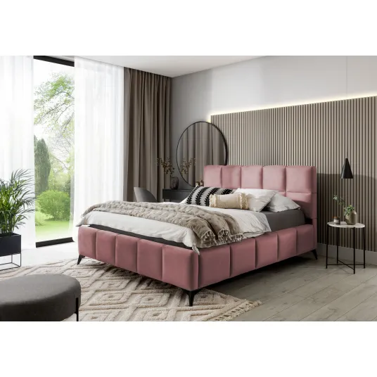 Pat dormitor Pat Mist 140x200, RozPatul Mist este o combinatie de design modern si stil glamour, care aduce o Nuta de eleganta oricarui dormitor. Tetiera are o umplutura moale din spuma acoperita cu tapiterie de inalta calitate. Matlasarea care impodobeste patul Mist adauga stil si caracter, precum si aduce o Nuta de modernitate. Mobilierul este disponibil in trei latimi ale suprafetei de dormit: 140, 160, 180 x 200 centimetri. Acest lucru faciliteaza ajustarea patului la conditiile din apartament. Picioarele negre, din otel, cu o lungime de pana la 13,5 centimetri, fac ca patul sa para sa pluteasca deasupra solului, ceea ce mareste optic camera in care va fi plasat patul de ceata. In plus, mobilierul este, de asemenea, echipat cu un container de asternut, care este o solutie foarte buna pentru spatii mici si va permite sa va pastrati dormitorul ordonat.223581577223581577