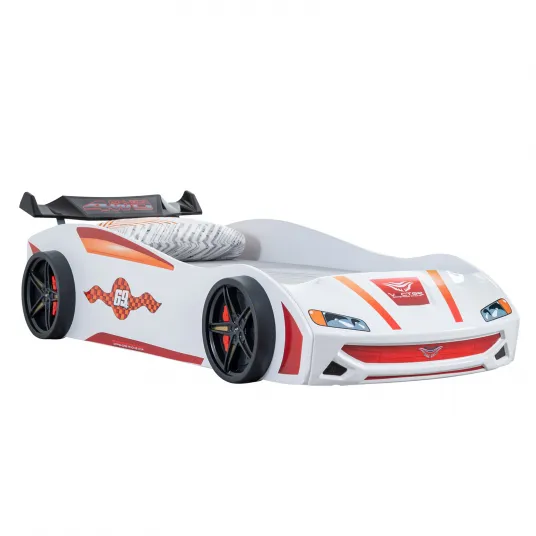 Pat pentru copii masina ECO VECTOR, alb, 90x190 cm