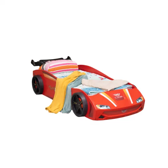 Pat pentru copii masina MVN1, cu sunet, telecomanda si lumini LED, negru, 90x190 cm