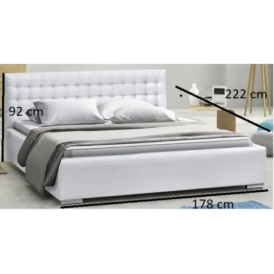 Pat tapitat de dormitor, 160x200, piele eco alb, cu suport saltea rabatabil si lada depozitare, Bortis Impex