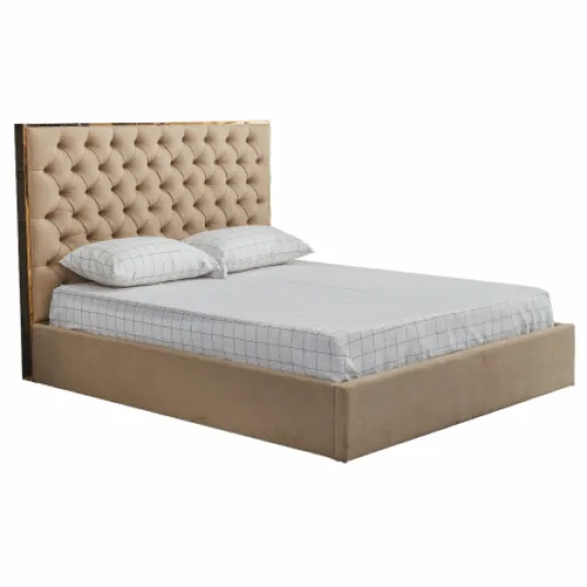 Pat tapitat de dormitor ,lux ... Tablia matlasata protejeaza patul de curent, dar ofera si suport pentru vizualizarea confortabila a televiziunii sau pentru citirea unei carti preferate. Cadrul decorativa in jurul tabliei mari de la cap , din oŢel inoxidabil ii ofera eleganta . Datorita designului BEJ -CREM NISIPIU , il puteti incorpora cu usurinta intr-un dormitor deja mobilat. Patul ofera, de asemenea, suficient spaŢiu de depozitare. Patul este livrat cu suport metalic si lamele lemn , insa fara saltea. Salteaua nu este inclusa in pret !! Material: Ţesatura-stofa Culoare: BEJ-CREM NISIPIU Dimensiuni (LxGxI): 170x217x130 SpaŢiu pt. dormit (LxL): 160x200 cm InalŢime pana la grilaj: 23 cm Furnizat cu grilaj din lamele Greutate per spaŢiu de dormit: 110 kg persoana SpaŢiu de stocare Tablie matlasata Cadru decorativ in jurul tabliei de la cap , din oŢel inoxidabil Se livreaza fara saltea Posibilitatea de a cumpara saltele din oferta noastra Se livreaza neasamblat , in colete ! Coletele contin tot ce este necesar pentru asamblare ! Usor de asamblat !