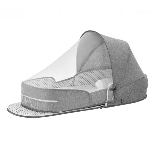 Patut Pliabil pentru Bebelusi, Sundiguer, Bumbac, Usor de Transportat, Plasa Impotriva Insectelor, 92x38x45 cm, Gri