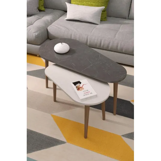 Размер кофейного столика : Ширина : 95 см Высота : 47 см Глубина : 47 см 2-й кофейный столик Размер : Ширина : 65 см Высота : 42 см Глубина : 35 см Продукция поставляется в разобранном виде. Благодаря модульной легко монтируемой конструкции, после сборки ножек он готов к использованию.