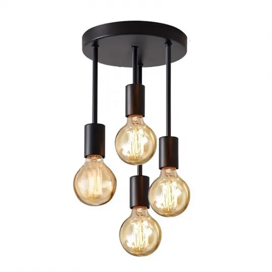 Pendul industrial LED, SINBINTA, 4 Capete, Cu accesorii de instalare, Baza rotunda, E27, 50W, Modern vintage, Usor de instalat, Rezistent la coroziune, Prevenirea ruginii, Negru