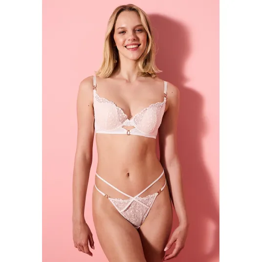 Penti, Sutien cu burete si strat exterior de dantela, Crem, 75C