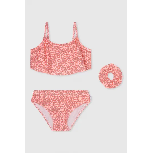 Pepe Jeans London, Set de costum de baie in doua piese cu elastic de par - 3 piese, Alb, Corai, 128 CMPepe Jeans London, Set de costum de baie in doua piese cu elastic de par - 3 piese, Alb, Corai, 128 CM223491226223491226
