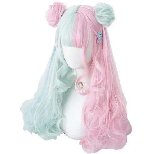 Peruca Cosplay Sweet Lolita Makaron, LEIISVK, roz cu verde, pentru femei