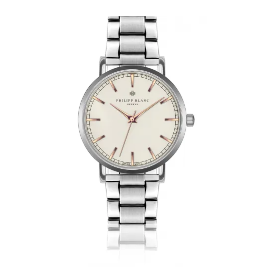 Philipp Blanc, Ceas unisex din otel inoxidabil cu trei indicatoare, Argintiu