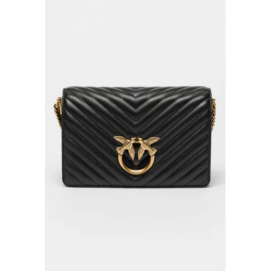 Pinko, Geanta crossbody de piele cu aplicatie logo metalica Love Click, Negru
