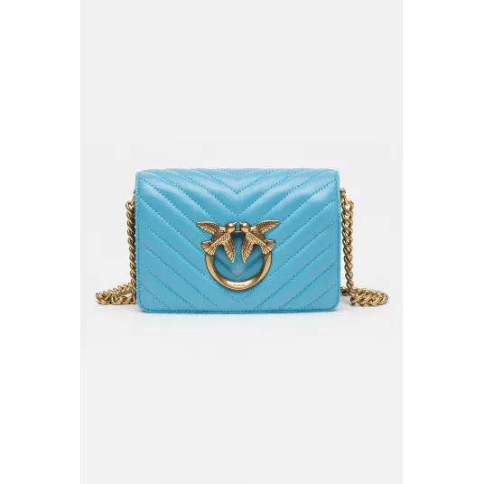 Pinko, Geanta crossbody de piele cu aspect matlasat Love Click, Albastru azur