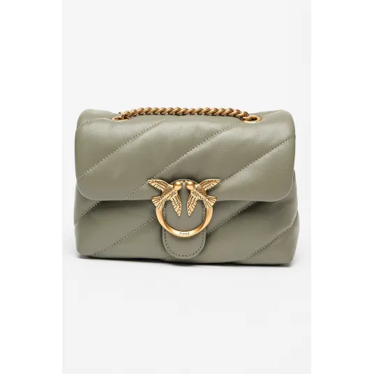 Pinko, Geanta crossbody de piele cu aspect matlasat Love Mini Puff, Gri carbune