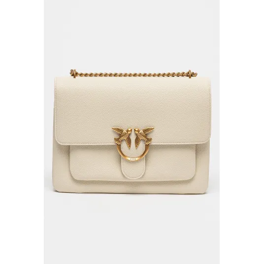 Pinko, Geanta crossbody de piele cu bareta de lant Love One, Alb fildesPinko, Geanta crossbody de piele cu bareta de lant Love One, Alb fildes223627392223627392